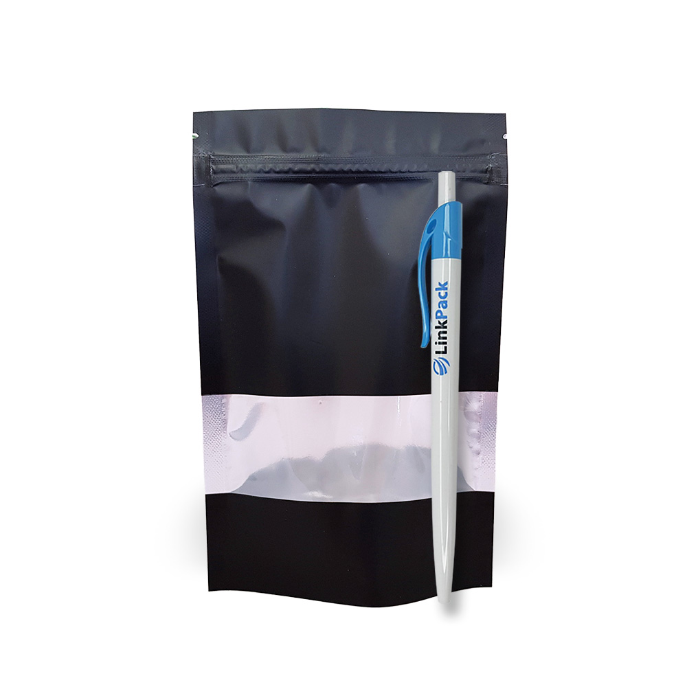 Элегантная матовая упаковка для самых требовательных клиентов – это дой-пак для продуктов весом до 50 г черного цвета с добавлением прозрачного окошка.