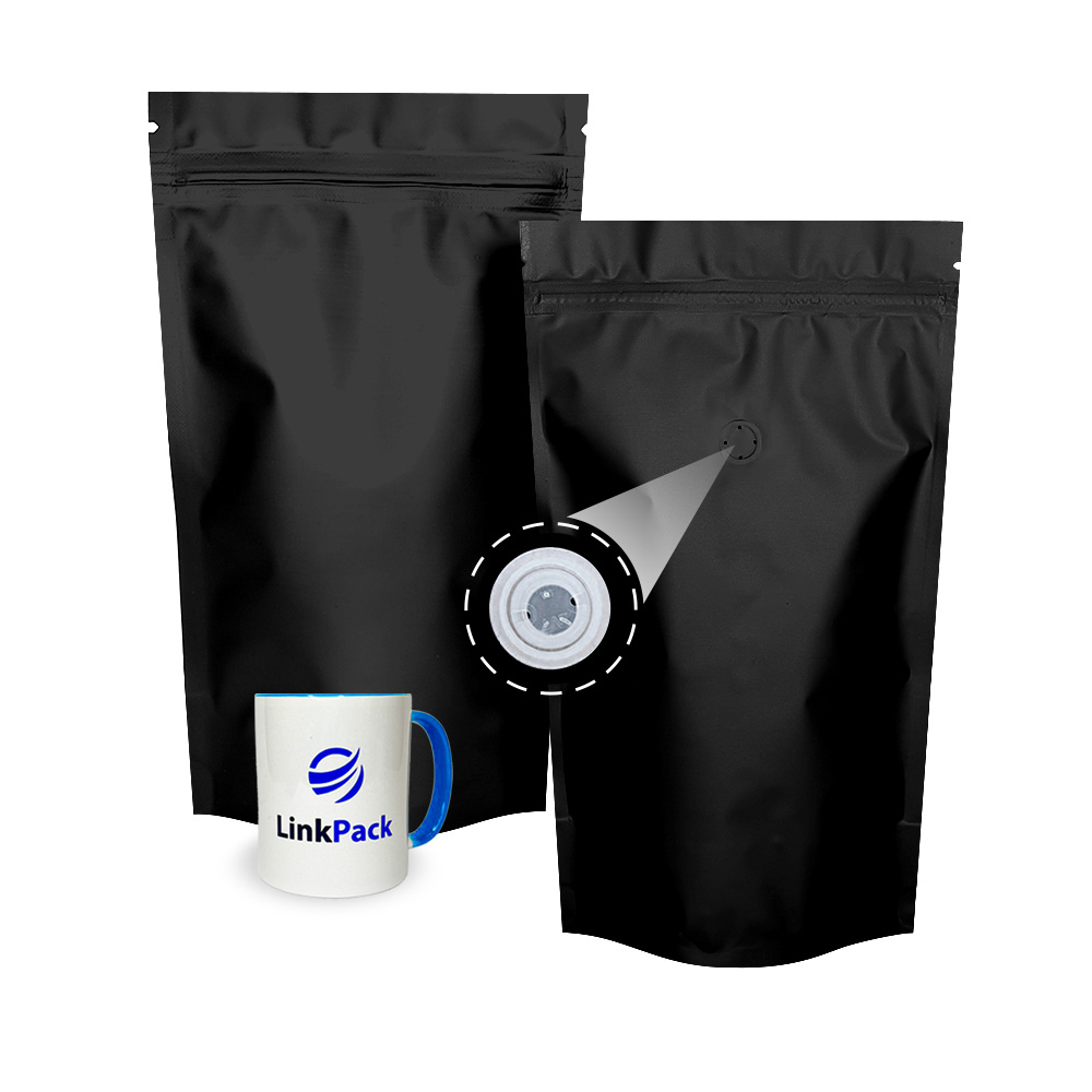 Металлизированная пленка в качестве промежуточного слоя обеспечивает жесткость и прочность упаковки, повышает барьерные свойства (не пропускает воздух, влагу и ультрафиолетовые лучи), что позволяет увеличить срок годности и продукта и защитит от внешних раздражителей. Дополнительно пакет дой-пак снабжается застежкой zip-lock, что позволяет многократно открывать пакет, а также небольшой пластиковый клапан, благодаря которому стравливается накапливающийся углекислый газ.