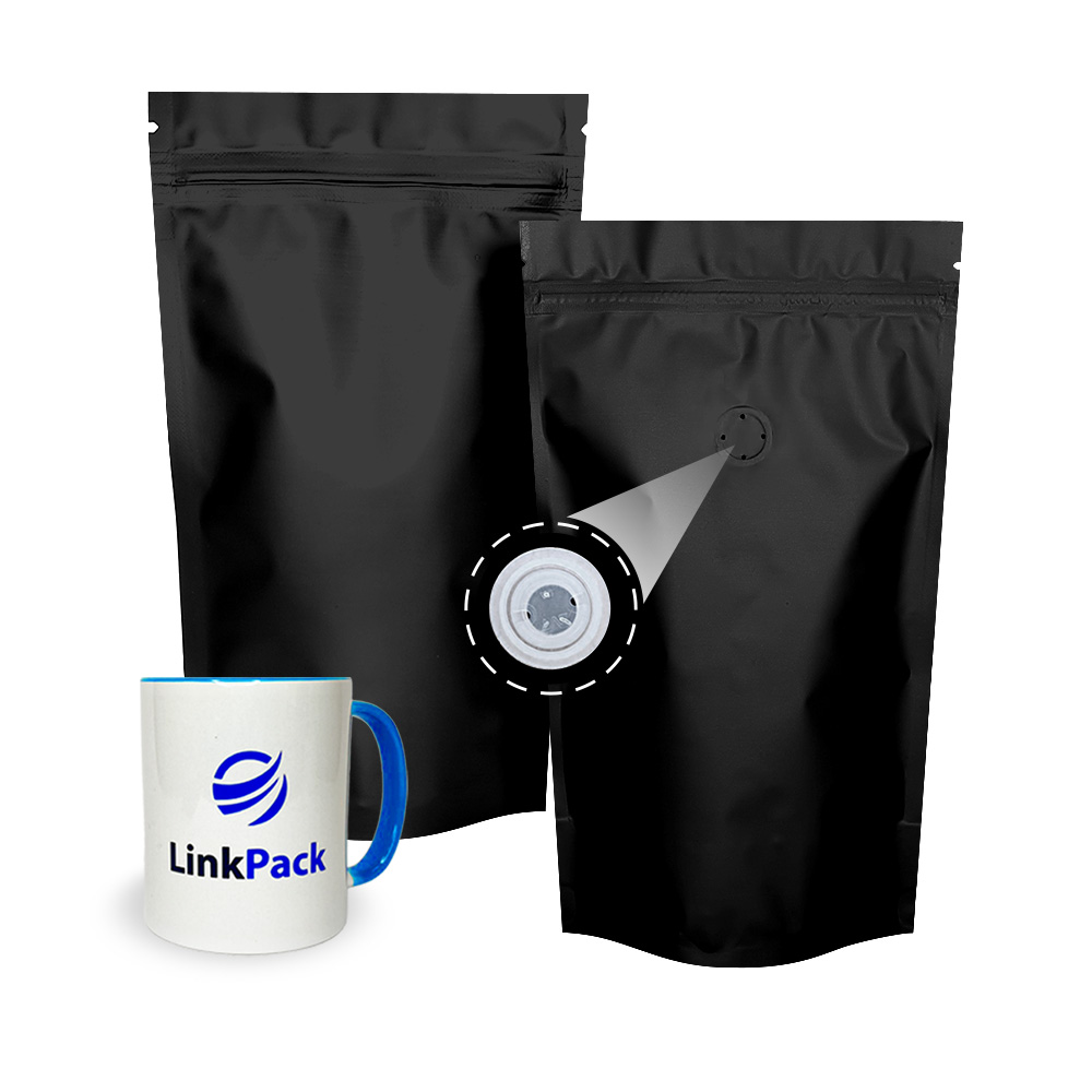 Металлизированная пленка в качестве промежуточного слоя обеспечивает жесткость и прочность упаковки, повышает барьерные свойства (не пропускает воздух, влагу и ультрафиолетовые лучи), что позволяет увеличить срок годности и продукта и защитит от внешних раздражителей. Дополнительно пакет дой-пак снабжается застежкой zip-lock, что позволяет многократно открывать пакет, а также небольшой пластиковый клапан, благодаря которому стравливается накапливающийся углекислый газ.