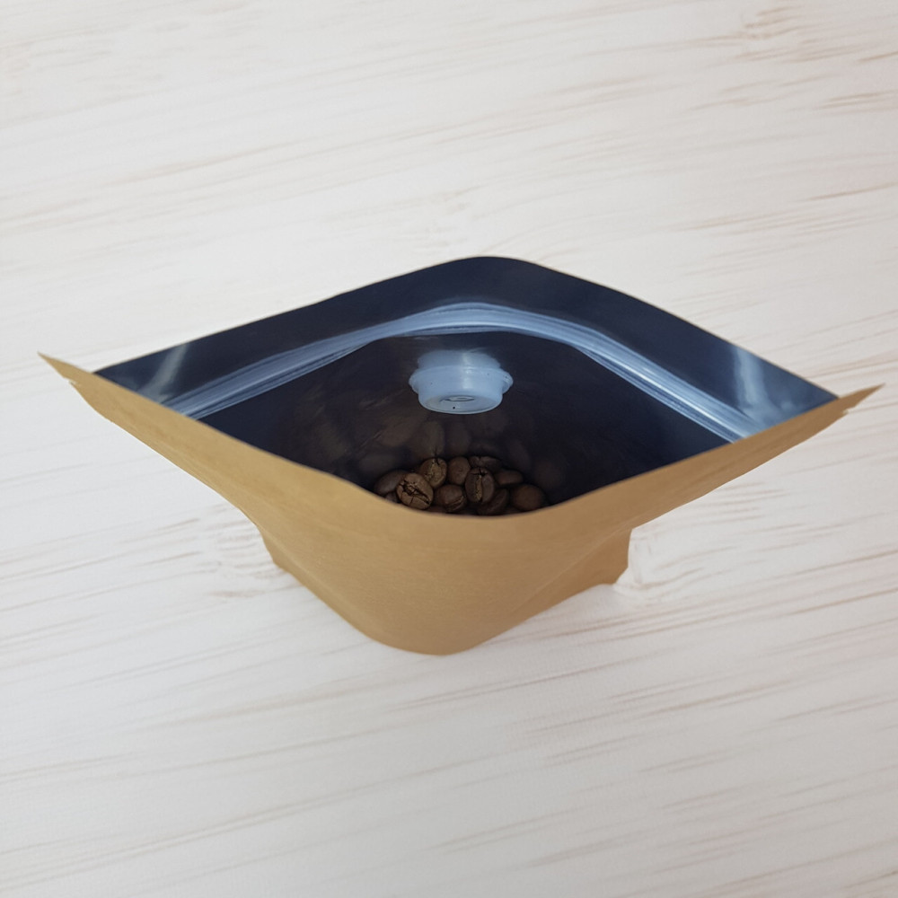 Чтобы максимально изолировать продукты от воздействия внешней среды, нужно продумать соответствующую конструкцию. Крафтовый дой-пак бурого цвета сделан из 3-х слойного материала, который позволяет не только сохранить оптимальную температуру, но и аромат.