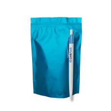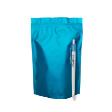 Эти изделия являются особым видом вакуумной гибкой упаковки в виде пятишовного пластикового пакета с устойчивым дном и зип-застежкой, выполненные в ярком аквамариновом цвете. Особенностями этого упаковочного материала являются: